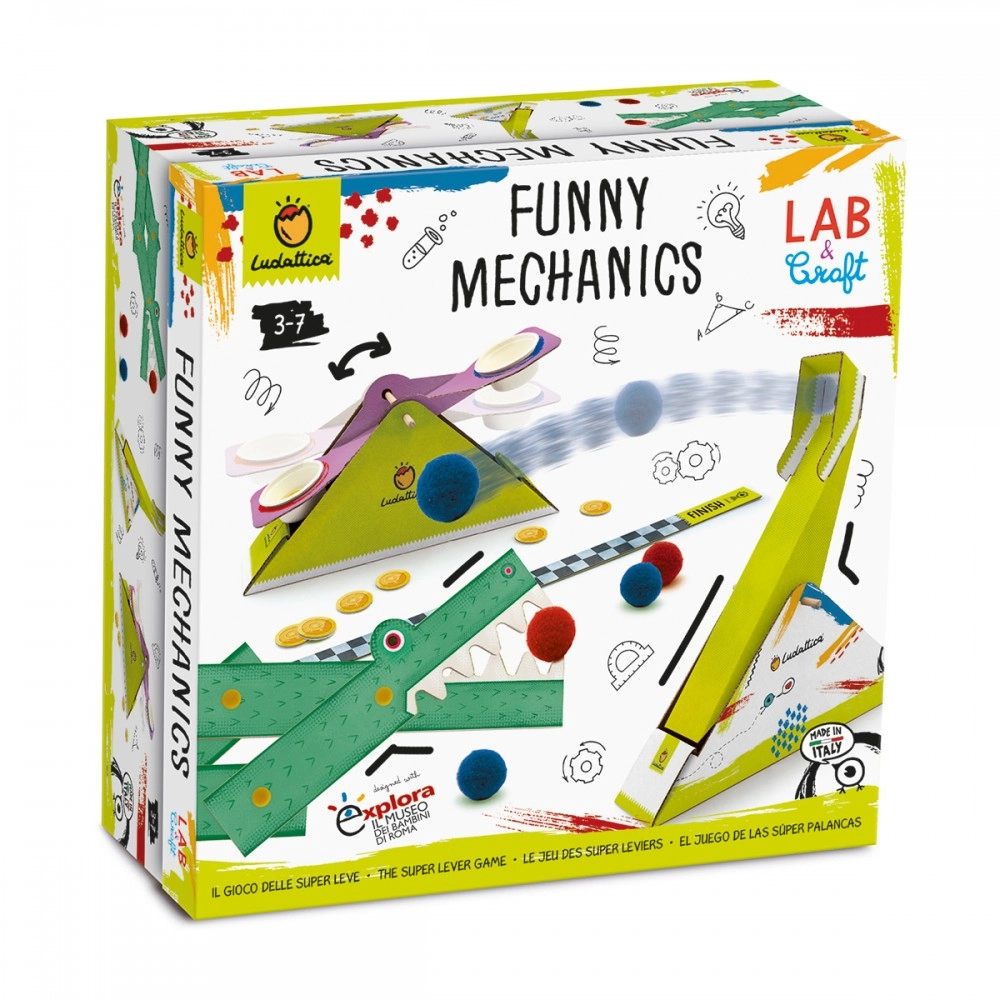 Η νέα, πρωτοποριακή σειρά «Lab & Craft», της αγαπημένης μας Ludattica έχει υλοποιηθεί σε συνεργασία με το μουσείο των παιδιών στη Ρώμη «EXPLORA», ώστε να προωθήσει την εκμάθηση των S.T.E.M. σε παιδιά μικρής ηλικίας, βοηθώντας τα να αναπτύξουν τις απαραίτητες αυτές δεξιότητες μέσω του παιχνιδιού και της διασκέδασης. Με το «Funny Mechanics» τα παιδιά εισάγονται στις έννοιες της μηχανικής. Κατασκευάστε τον δικό σας καταπέλτη, και εκτοξεύστε τα πολύχρωμα πομ-πομ όσο πιο μακριά μπορείτε. Φτιάξτε τη ζυγαριά και ζυγίστε τους θησαυρούς σας ή χρησιμοποιήστε τον κροκόδειλο για να μαζέψετε όλα σας τα μικροαντικείμενα. Με το παιχνίδι αυτό, τα παιδιά θα μάθουν τις βασικές αρχές της φυσικής όπως την λειτουργία των μοχλών. Περιεχόμενα: 1 καταπέλτης, 1 ζυγαριά, 2 ποτηράκια, 1 βάση, 1 ξύλινη πινέζα, 6 χάρτινα κομμάτια για την κατασκευή του μηχανικού κροκόδειλου, 7 κουμπιά, 8 πολύχρωμα πομ-πομ, 20 νομίσματα θησαυρού, εκπαιδευτικό εγχειρίδιο οδηγιών.